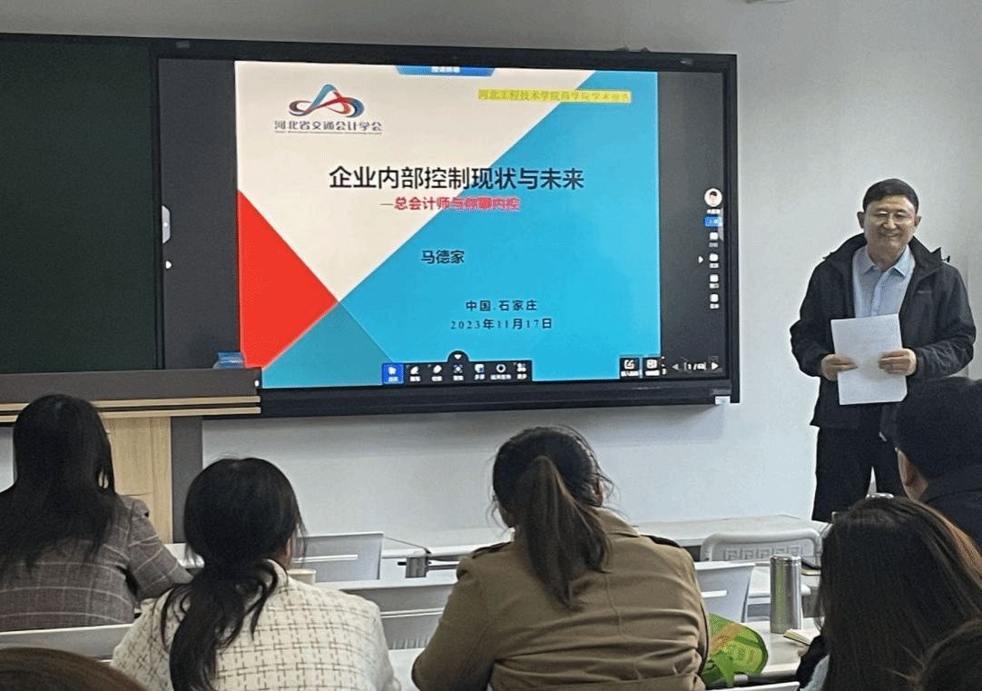 为提升教师实践教学能力,把握社会动向,树立社会服务意识,2023年11月17日河北工程技术学院西西人体4ⅹ4wwwA片召开主题为“企业内部控制现状与未来——总会计师与你聊内控”学术报告会。此次会议由西西人体4ⅹ4wwwA片院长王明吉主持,邀请到现任河北省交通会计学会副会长,具有三十余年企事业单位财审实践经验的正高级会计师马德家,西西人体4ⅹ4wwwA片教学副院长姜玉婕、财务管理、会计学、审计学、金融工程教研室教师出席了此次会议。