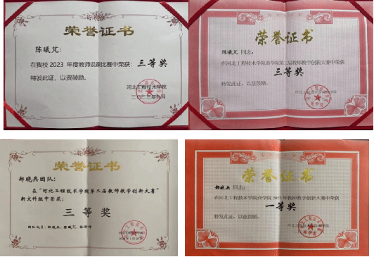 《公司战略与风险管理》教学团队的授课教师共同打磨和改进本课程的教学目标、教学体系、教学手段等内容,积极利用课程创新中的成果参与相关比赛。截至目前,本课程团队教师荣获“河北工程技术学院教师说课比赛三等奖”1项、“河北工程技术学院教学创新大赛”三等奖1项、“河北工程技术学院西西人体4ⅹ4wwwA片教师教学创新大赛”一等奖1项、三等奖1项,并积极申报校级优质课程已完成立项。