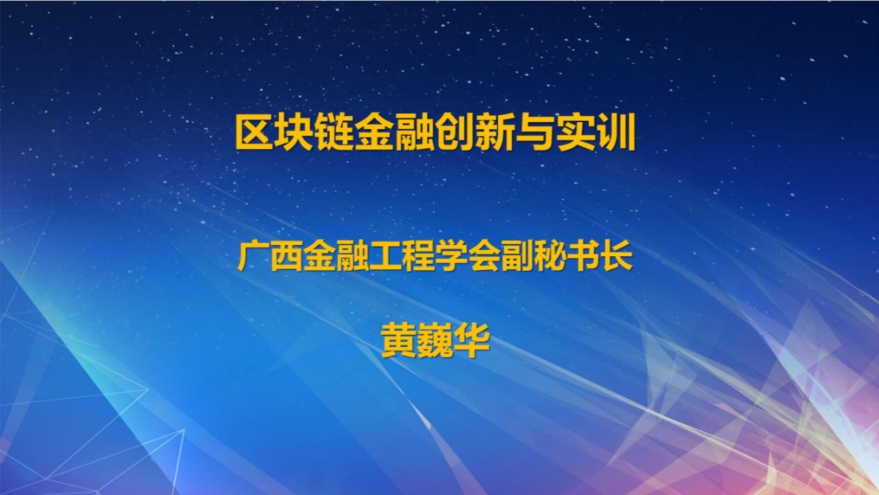2022年12月27日至28日,广西金融工程学会副秘书长黄巍华老师为同学们带来了为期两天的《区块链金融创新与实训》课程黄老师从区块链基础原理、建链与演练、区块链在银行中的应用、区块链的价值分析、区块链在证券中的应用等方面,带同学们全面了解了区块链的行业价值和使用场景。