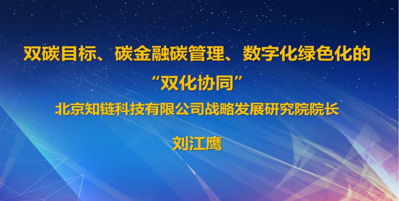 北京知链科技有限公司战略发展研究院刘江鹰院长为同学们做了题为《双碳目标、碳金融碳管理、数字化绿色化的“双化协同”》的主题报告。刘院长指出“双化协同”正在不断塑造发展新动能新优势,我国企业要做到与时俱进,加快实现绿色转型。