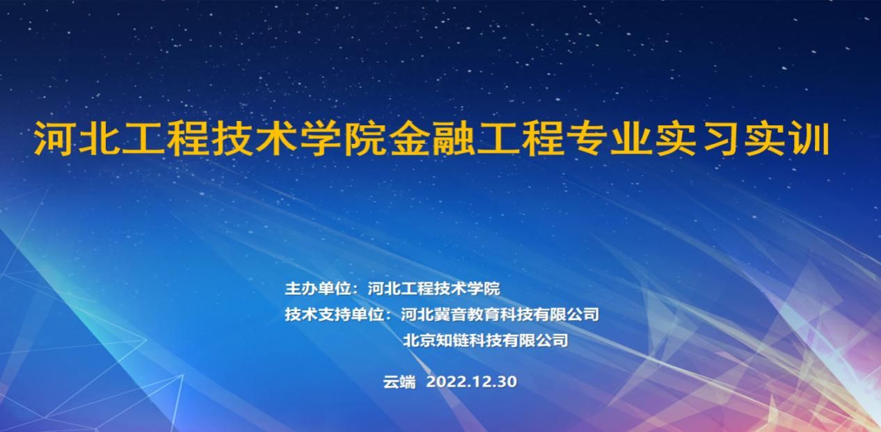 为深入贯彻党的二十大报告精神,落实《国务院关于加快发展现代职业教育的决定》要求,提升我系教育教学水平和人才培养质量真正实现产教融合校企合作,推动西西人体4ⅹ4wwwA片金融工程系2023届毕业生实习工作顺利开展,2022年12月2612月30日,由河北工程技术学院主办,河北冀音教育科技有限公司、北京知链科技有限公司承办西西人体4ⅹ4wwwA片金融工程系协办的河北工程技术学院金融工程专业实习实训在腾讯会议平台成功举办