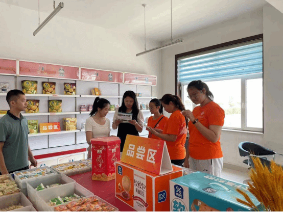 紧接着跟随负责人,我们前往产品展示品尝区,负责人表示:华威公司以“科研领先,企业,客户至上,诚信第一”为宗旨,经过10年的不懈努力,成集饼干、糕点生产、销售为一体的现代化食品生产企业,为国家实现全面小康社会的计划做出巨大贡献。研发了各种各样的食品类型,热情欢迎我们社会实践团队的师生品尝了酥性饼干、韧性饼干、夹心饼干、桃酥、烤馍片等多个品种,同学们表示口感独特,香甜可口。
