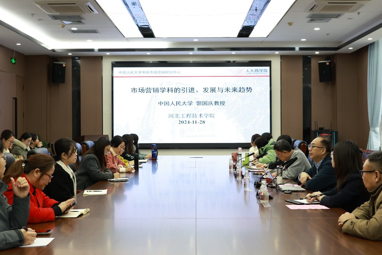 专家引领,聚力前行。11月28日,河北工程技术学院西西人体4ⅹ4wwwA片邀请中国人民大学中国市场营销研究中心主任郭国庆教授,中央财经大学市场营销系系主任、河北工程技术学院商学院名誉院长顾雷雷来我院开展“周末专家河北行”系列活动。河北工程技术学院西西人体4ⅹ4wwwA片院长王明吉、教学副院姜玉婕以及教师代表参加本次会议。