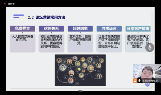 首先,高贤老师向同学们展示了网络知识平台,论坛营销的常用方法以及故事式软文写作要点,详细讲解了网络口碑传播,口碑传播分类、网络口碑平台(微信、微博、豆瓣、小红书、抖音、快手、大众点评网、行业门户网站、论坛),利用案例给我们讲解了网络论坛营销推广的方法及问答推广实战。同学们掌握扎实理论知识,之后再运用到实际操作中。