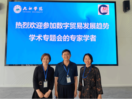 由中国国际贸易学会和九江学院共同主办的“数字贸易发展趋势学术专题会”于2023年6月10日在江西九江学院召开。来自中国国际贸易学会、国内高校、政府企业等领域的知名专家100余人纵论数字贸易发展理论与实务问题。我院王明吉院长、马秀丽老师、梁慧老师参加了本次会议。