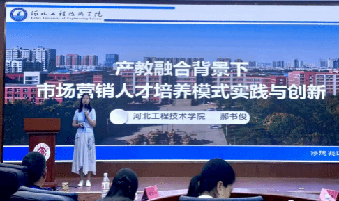 会议期间郝书俊老师受邀做了题目为《产教融合背景下市场营销人才培养模式实践与创新》优秀论文分享报告,她讲述了产教融合已经成为国家战略的重要构成部分,市场营销专业需多方协同构建产教融合人才培养解决方案。郝老师提出了根据社会需求制定人才培养方案、重构交叉融合的课程体系、打造政行校企村育人模式、四堂融合提升学生综合能力、培育双师双能师资队伍等优化措施。