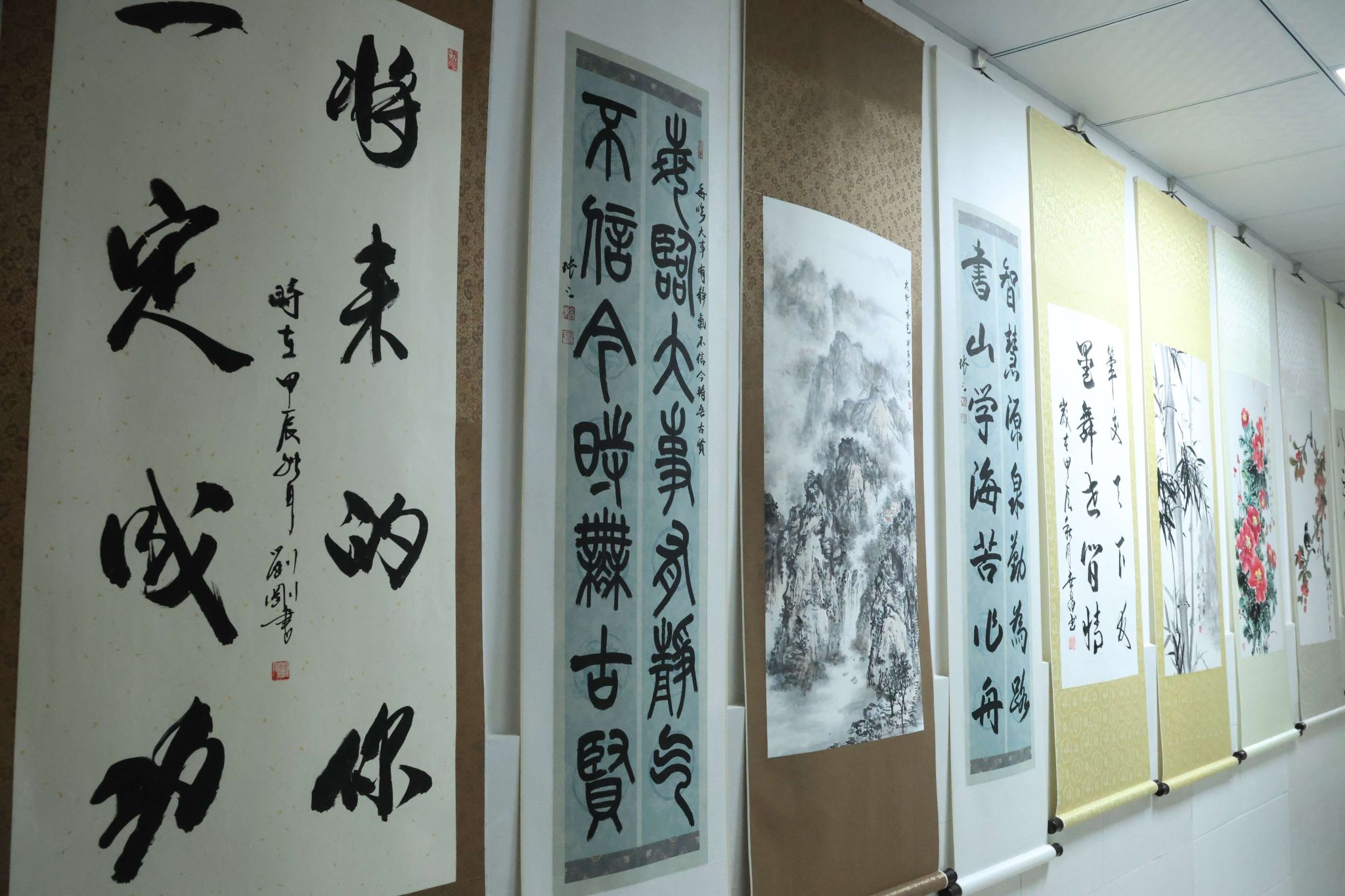 开幕式结束后,校园文化书画作品展暨公益笔会正式拉开帷幕。展览现场,墨香四溢,丹青焕彩。书法作品或雄浑大气或婉约细腻,笔势遒劲有力,仿佛在诉说着古老的文化故事。绘画作品则题材广泛,山水画卷气势磅礴,花鸟作品栩栩如生,人物画像神韵十足。每一幅作品都凝聚着艺术家们的深厚造诣和独特匠心。公益笔会现场,文化艺术名家们挥毫泼墨,即兴创作了大量精美的书画作品,赠送给师生!师生们在欣赏书画作品的同时,纷纷感叹艺术的无穷魅力。同学们表示,通过这次展览,他们对书画艺术有了更深刻的认识和理解,也对美育教育有了更直观的感受。