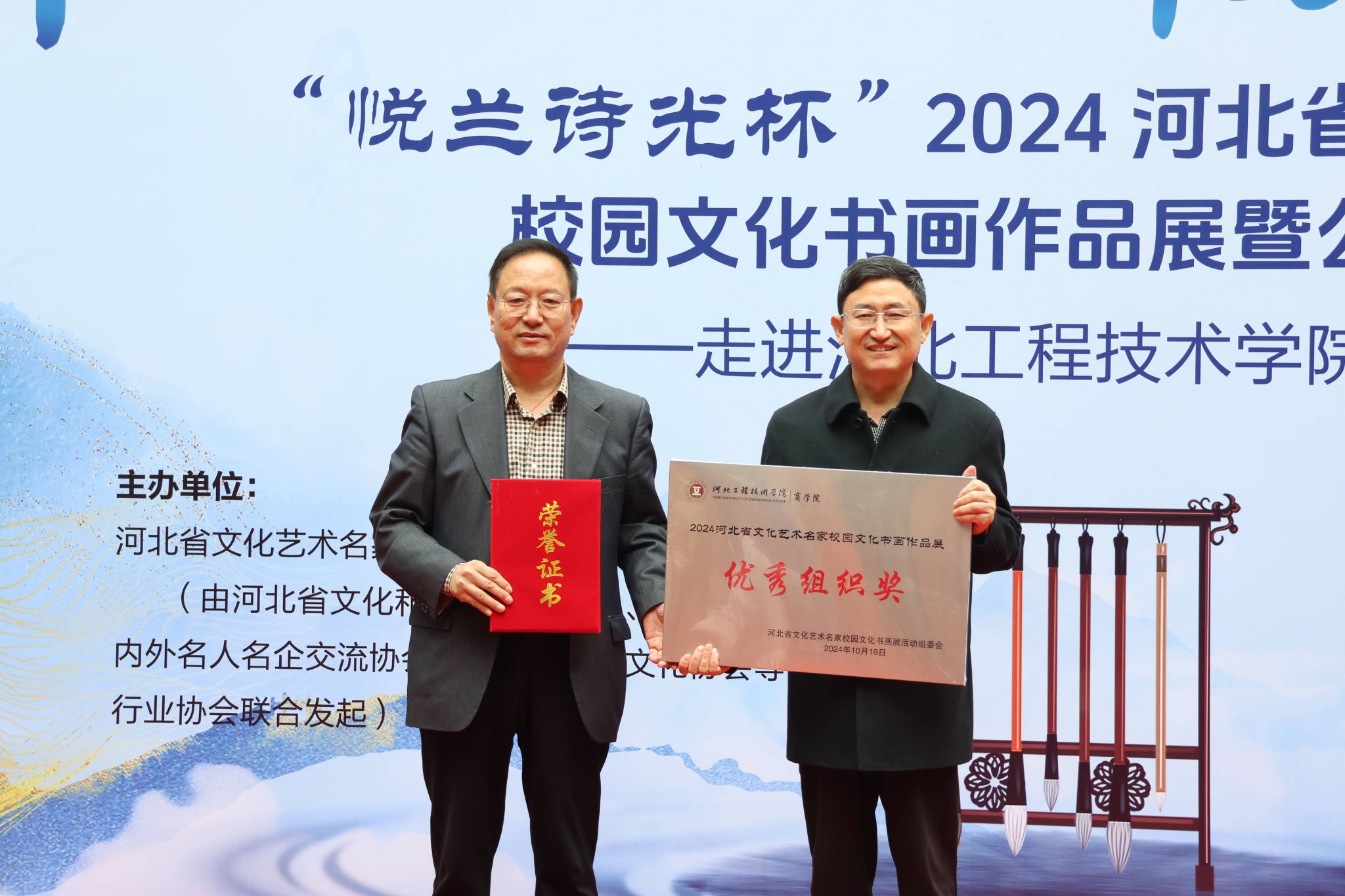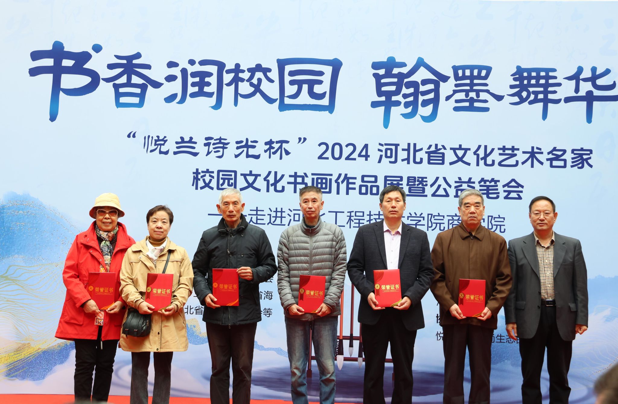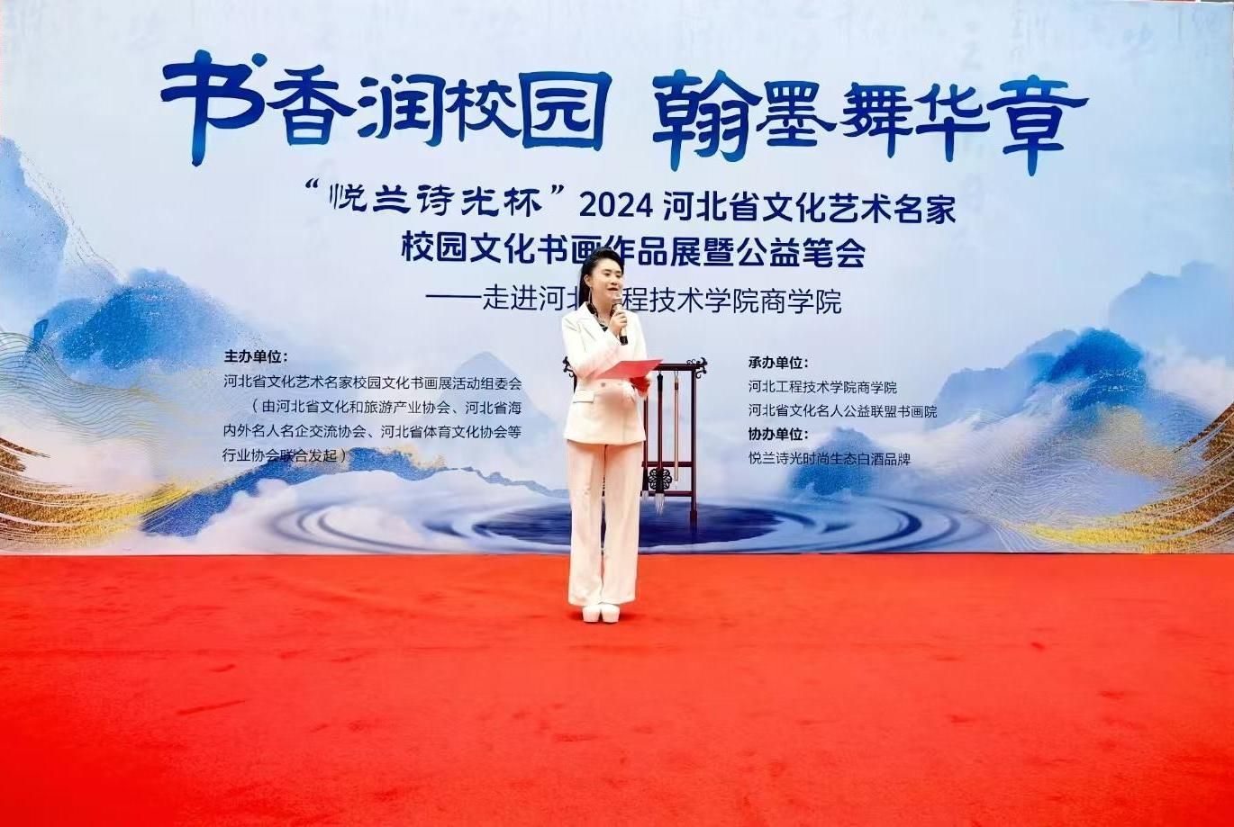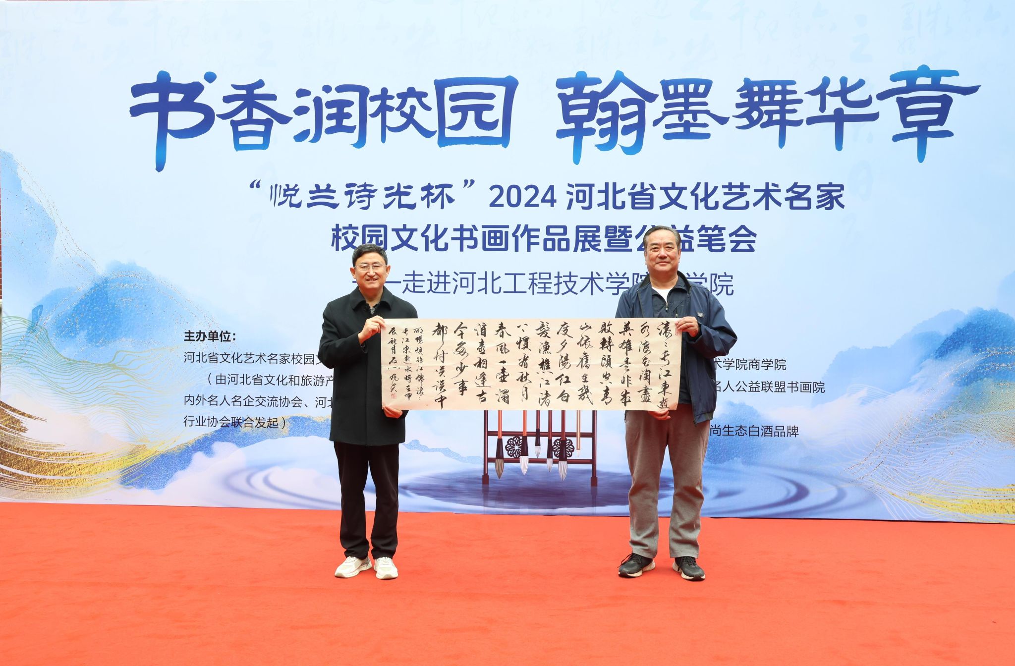 书香润校园,翰墨舞华章。为弘扬传统文化艺术,强化校园文化建设,提升美育教育水平。10月19日上午,“悦兰诗光杯”2024河北省文化艺术名家校园文化书画作品展暨公益笔会在西西人体4ⅹ4wwwA片成功举办。本次活动由河北省文化艺术名家校园文化书画展活动组委会(由河北省文化和旅游产业协会品牌推进专业委员会、河北省海内外名人名企交流协会、河北省体育文化协会等单位联合发起)主办,由河北工程技术学院西西人体4ⅹ4wwwA片、河北省文化名人公益联盟书画院承办,由悦兰诗光时尚生态白酒品牌协办。参加此次活动的领导有河北省文化艺术名家校园文化书画展活动组委会主任王俊昆、西西人体4ⅹ4wwwA片院长王明吉、活动组委会成员、书画家代表及西西人体4ⅹ4wwwA片师生代表。本次活动由石家庄广播电视台财经融媒节目主持人、西西人体4ⅹ4wwwA片2019届优秀校友杨静担任主持人。