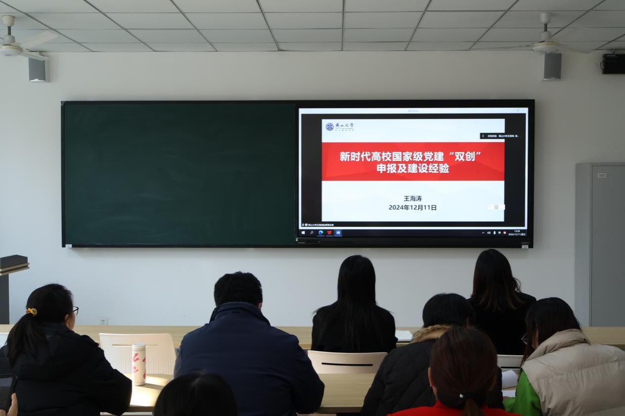 首先,燕山大学经济管理学院党委副书记王海涛就《新时代高校国家级党建“双创”申报及建设经验》这一主题进行了讲解,结合燕山大学经济管理学院党建工作经做法以及如何填写全国党建工作样板支部申报书进行了详细介绍。最后对近期前往湖北省三个高校调研学到的优秀经验和做法进行了毫无保留的分享。