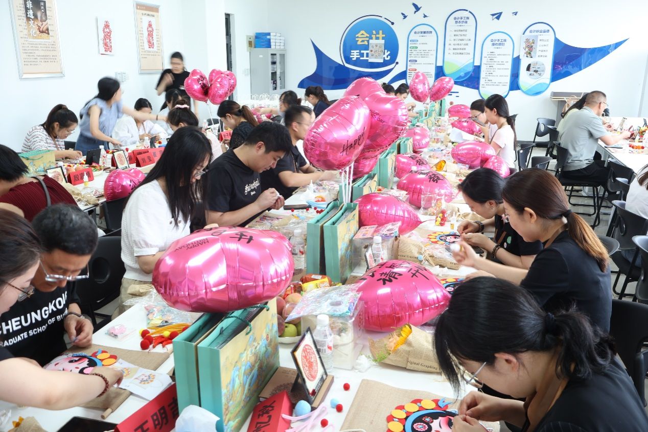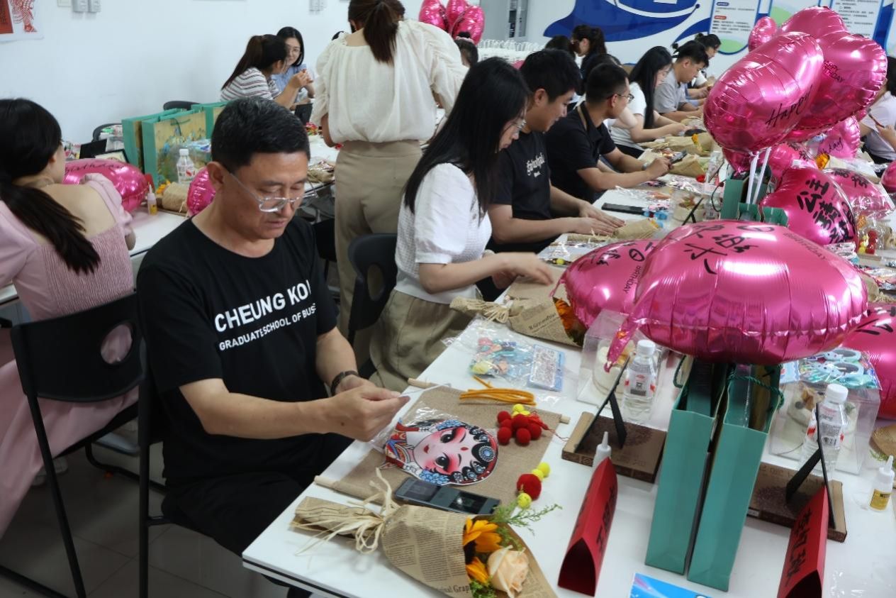 活动现场热闹、祥和,学院为老师们精心准备了鲜花、饮品、蛋糕以及来自张家口蔚县的非遗剪纸,通过非遗手工DIY京剧花旦挂画的制作,整个活动现场充满了艺术气息。本次活动不仅是一次手工制作的体验,更是一场教职工之间的交流盛会。在轻松愉快的氛围中,老师们不仅能够尽情享受手工制作的乐趣、分享彼此的创意和心得,更在交流中加深了友谊,感受到了学院大家庭的温暖与关怀。