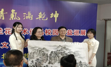 珍重天公裁剪意,妆成敛拜喜盈眉。王昆先生长期从事兰花国画艺术的创作,古人云:“一生兰,半生竹”,其兰花艺术作品清新脱俗,充满希望和生命力,王昆先生为大家赠送兰花艺术作品和笔记本,展现的艺术作品得到了大家的一致好评。王昆先生指出,要大力弘扬中华优秀传统文化,大力支持文化公益活动,促进对校园文化的建设发展。王院长、宁院长为书法家颁发“文化艺术顾问”聘书,并对各位书法艺术家莅临活动现场表达感谢。