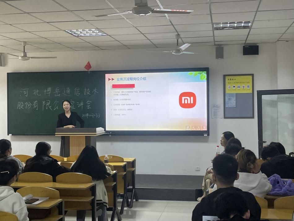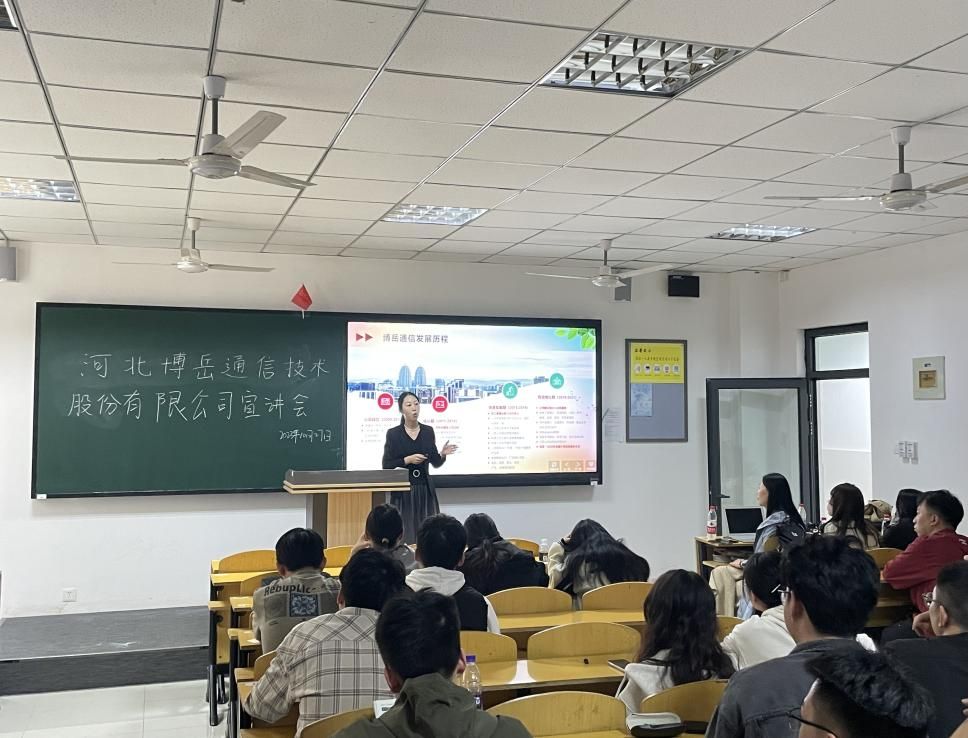 河北博岳通信技术股份有限公司于2023年10月28日在西西人体4ⅹ4wwwA片103教室成功举办了毕业生招聘宣讲会。本次宣讲会旨在向西西人体4ⅹ4wwwA片2020级市场营销班和2020级金融工程班的同学们介绍公司的招聘需求、企业文化和发展前景,同时为同学们提供一个与公司交流的平台。