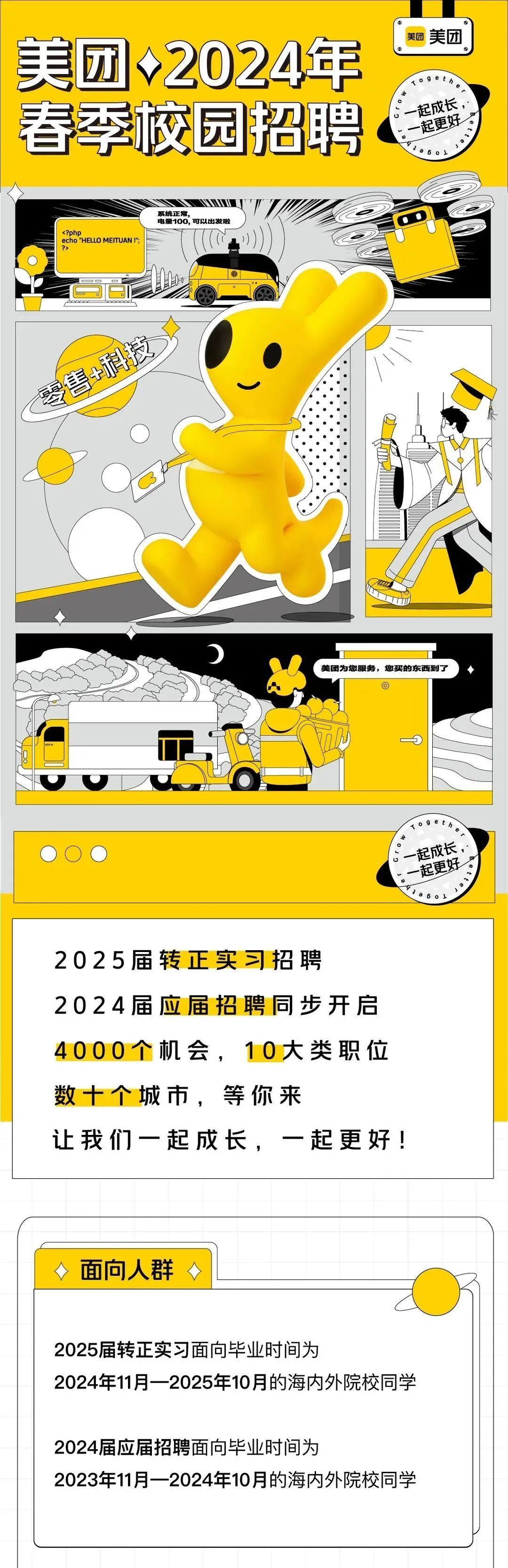 招4000人,美团2024年春季校园招聘2月26日全球启动