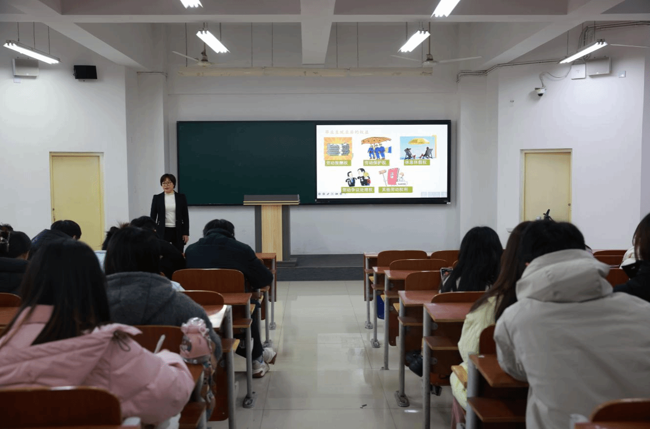 与此同时,在3-3-2教室,刘改琴讲师详细阐述了职场初期维护自身权益的有效方法,并结合实际法律条文进行解读,分享了大学生求职过程中的侵权真实案例,系统地传授学生避免陷入求职“陷阱”的方法,保障自身合法权益。在互动环节,同学们提出“实习期间未签订合同如何保障权益”等问题,刘老师都一一做出了专业且详尽的解答。