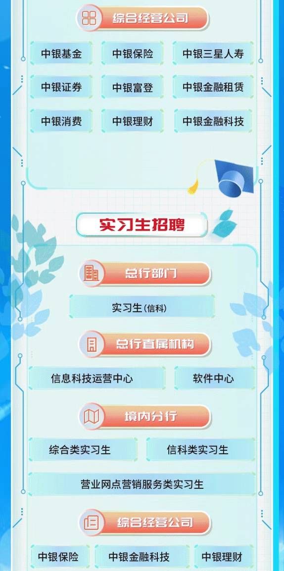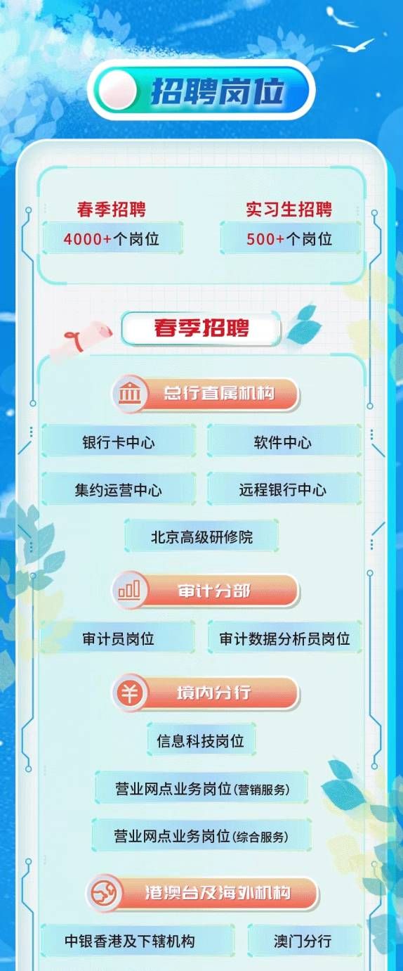 中国银行2025年春季招聘和实习生招聘同步启动!
