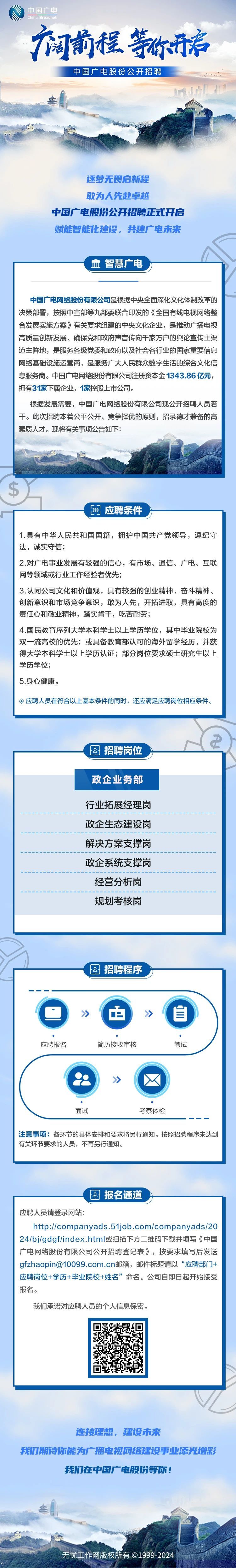 日期: 2025-01-06 信息来源: 广电招聘 点击数: