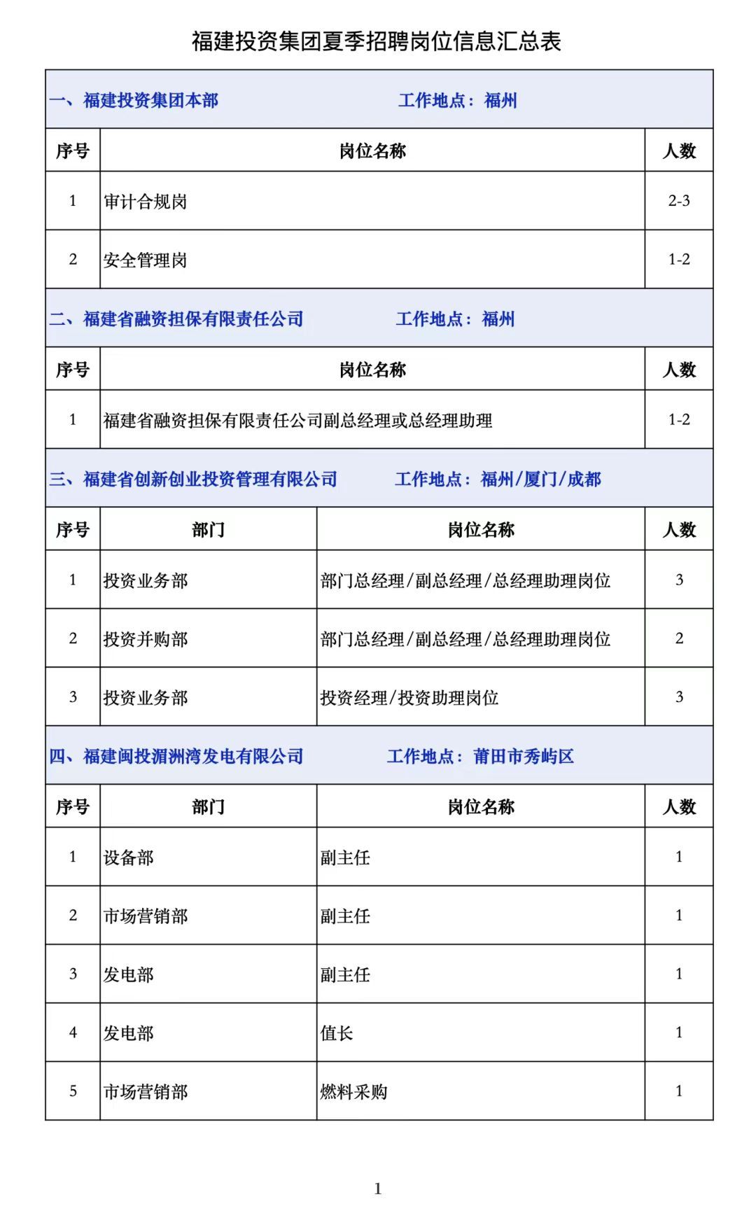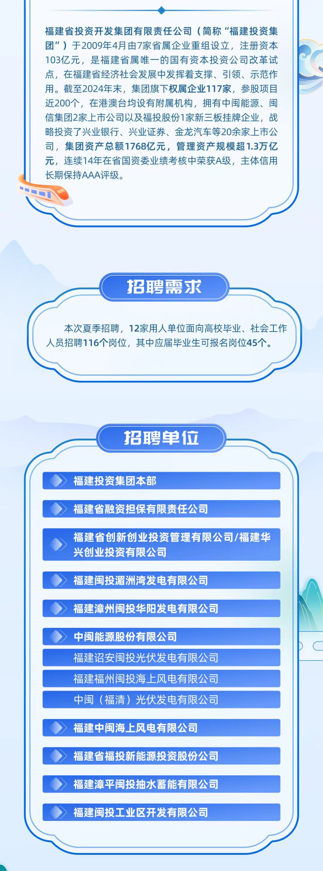 福建投资集团2025年夏季招聘
