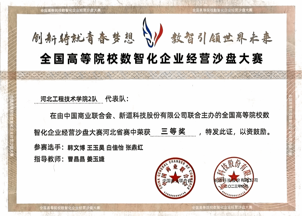 图5全国高等院校数智化企业经营沙盘大赛省级“三等奖”