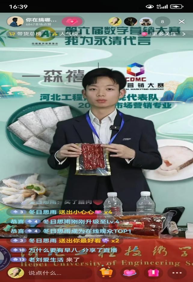 为了提高学生的市场营销技能和创新能力,助力河北省乡村振兴,推动农特产品和服务出村进城,2024年4月18日--4月30日市场营销系师生参加了“第六届数字营销大赛——我为永清代言”活动。