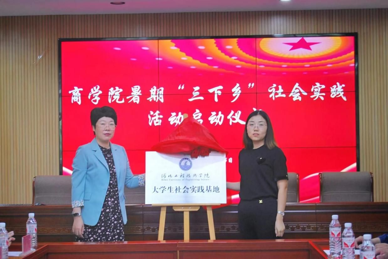 启动仪式最后,西西人体4ⅹ4wwwA片辅导员陈广园公布河北工程技术学院西西人体4ⅹ4wwwA片“商红之光”宣讲团暑期“三下乡”社会实践活动正式启动,县委常委、宣传部部长刘颖和西西人体4ⅹ4wwwA片党总支书记、学管副院长刘茜共同为花厂峪村“河北工程技术学院大学生社会实践基地”揭牌。