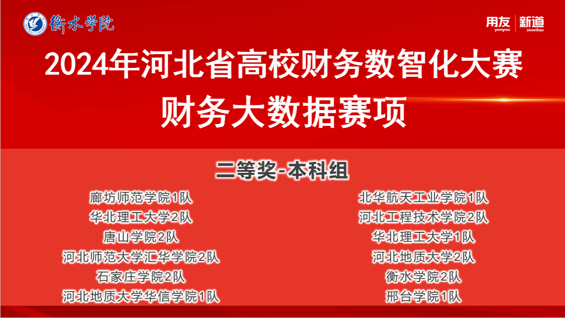 由河北省教育厅主办的2024年第五届河北省高校财务数智化大赛“财务大数据赛项”于2024年10月18日圆满落幕。我校西西人体4ⅹ4wwwA片由边圆围、刘莹和闫宇佳老师带领的2支队伍,一队刘晓君、吴晶羽、胡逍洋、赵任航和二队刘子扬、徐梦瑶、高炎琪、王静,在学院领导的大力支持和帮助下,在老师们的共同指导下,参赛同学努力练习不断努力进取下,分别获得河北省一等奖和二等奖的好成绩!