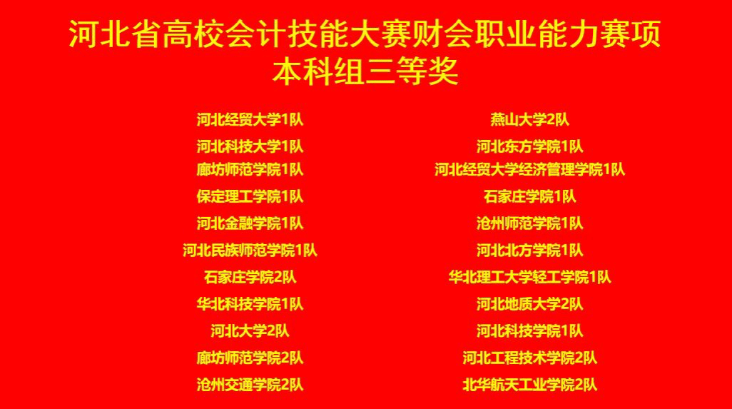 2024年10月19日,由河北省教育厅主办,河北地质大学承办的2024年河北省高校会计技能大赛财会职业能力赛项圆满落幕。此次大赛吸引了来自全省多所高校的会计学专业优秀学子,共同角逐财会职业能力的巅峰荣耀。我校西西人体4ⅹ4wwwA片由万月和边圆围老师带领的两支队伍,一队吴朝臣、纪泽峰、庞海姣、孙文慧和二队王苗苗、王若萌、李敏、李玉婷分别获得了省二等奖和三等奖的优异成绩!