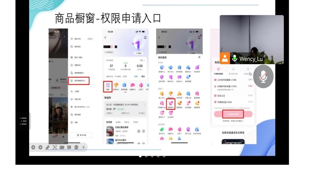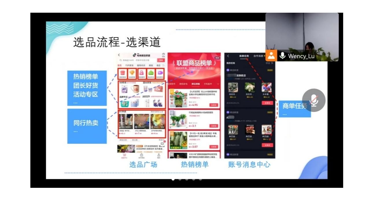 最后路老师为我们讲解了商品如何选品、选品的渠道、免费申样的注意事项。通过老师的详细介绍,我们学会了如何玩转精选联盟,拓宽了新媒体营销知识,对精选联盟有了更深的了解,为以后的职业规划打下了良好的基础。