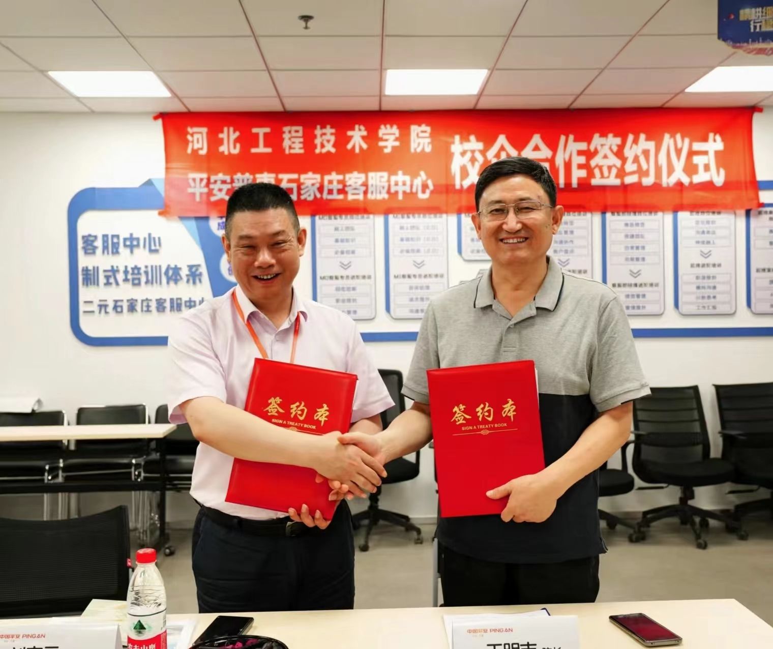 为进一步提高人才培养质量,深化校地融合发展,强化校企合作,7月6日,河北工程技术学院西西人体4ⅹ4wwwA片与平安普惠石家庄客服中心举行校企合作签约仪式。西西人体4ⅹ4wwwA片院长王明吉、院长助理王昊、招生就业办公室主任岳亚鑫及史磊老师,平安普惠石家庄客服中心总经理刘宏云、副总经理李丛、经理孙佳悦、总监吕晴参加校企合作签约仪式。