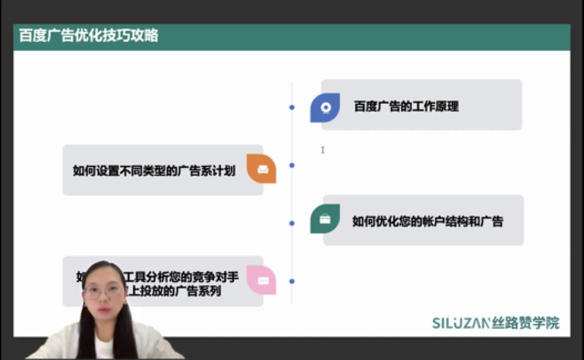 通过高老师精彩的讲解,我们学会了数字化营销转型的策略、百度广告优化技巧如何设置广告计划如何优化账户结构、如何用工具分析竞争对手等新的营销知识。这节课的知识让我们受益匪浅,拓宽了我们的视野,为以后从事数字营销工作打下了良好的基础。
