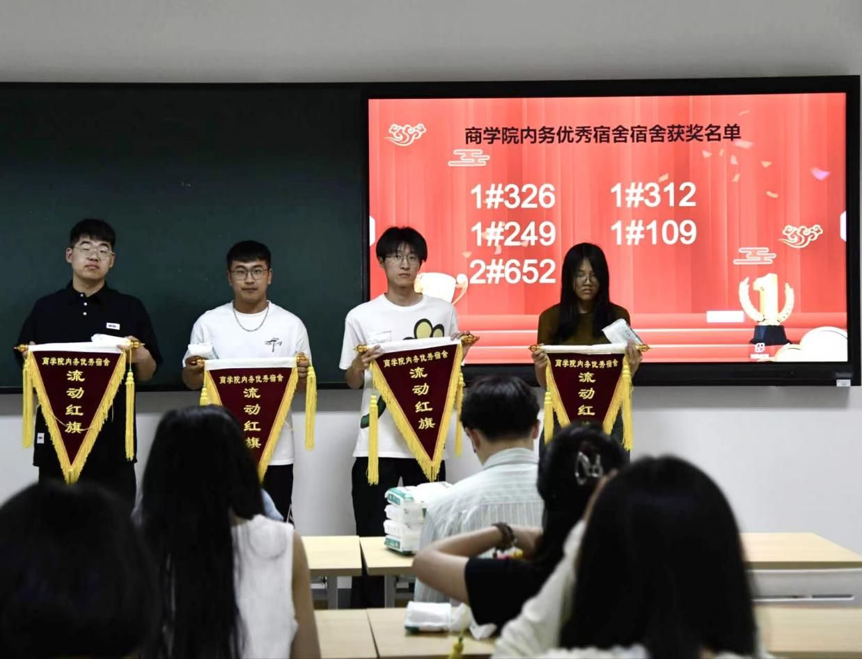 西西人体4ⅹ4wwwA片自律委工作人员、安全文明宿舍代表和内务优秀宿舍代表参加颁奖仪式。通过4月综合评比,共有6间宿舍获得“安全文明宿舍”和10间宿舍获得“内务优秀宿舍”荣誉称号。工作人员对以上优秀宿舍颁发流动红旗及奖品以资鼓励,并组织了以上优秀宿舍代表进行拍照留念。